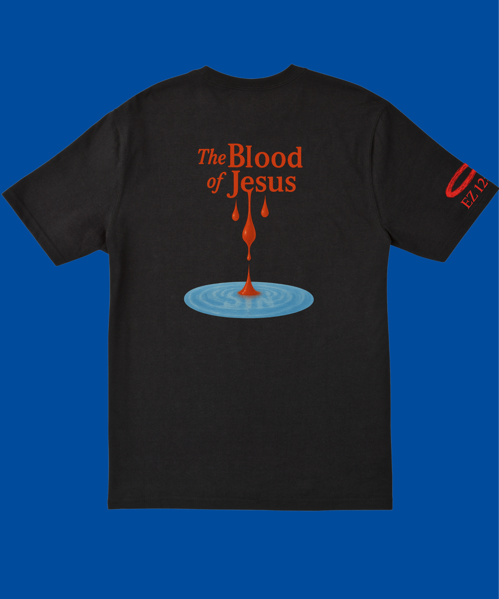 Crafted from 100% ringspun cotton, this unisex tee lets you wear your faith with bold style. The front features “1 John 1:7” as a subtle reminder of the promise: “But if we walk in the light… the blood of Jesus cleanses us from all sin.” On the back, striking red text declares “The Blood of Jesus”, with crimson droplets falling into a blue pool where the word SIN fades away—symbolizing Christ’s cleansing power. Soft, durable, and versatile, it’s perfect for church, missions, or everyday wear.