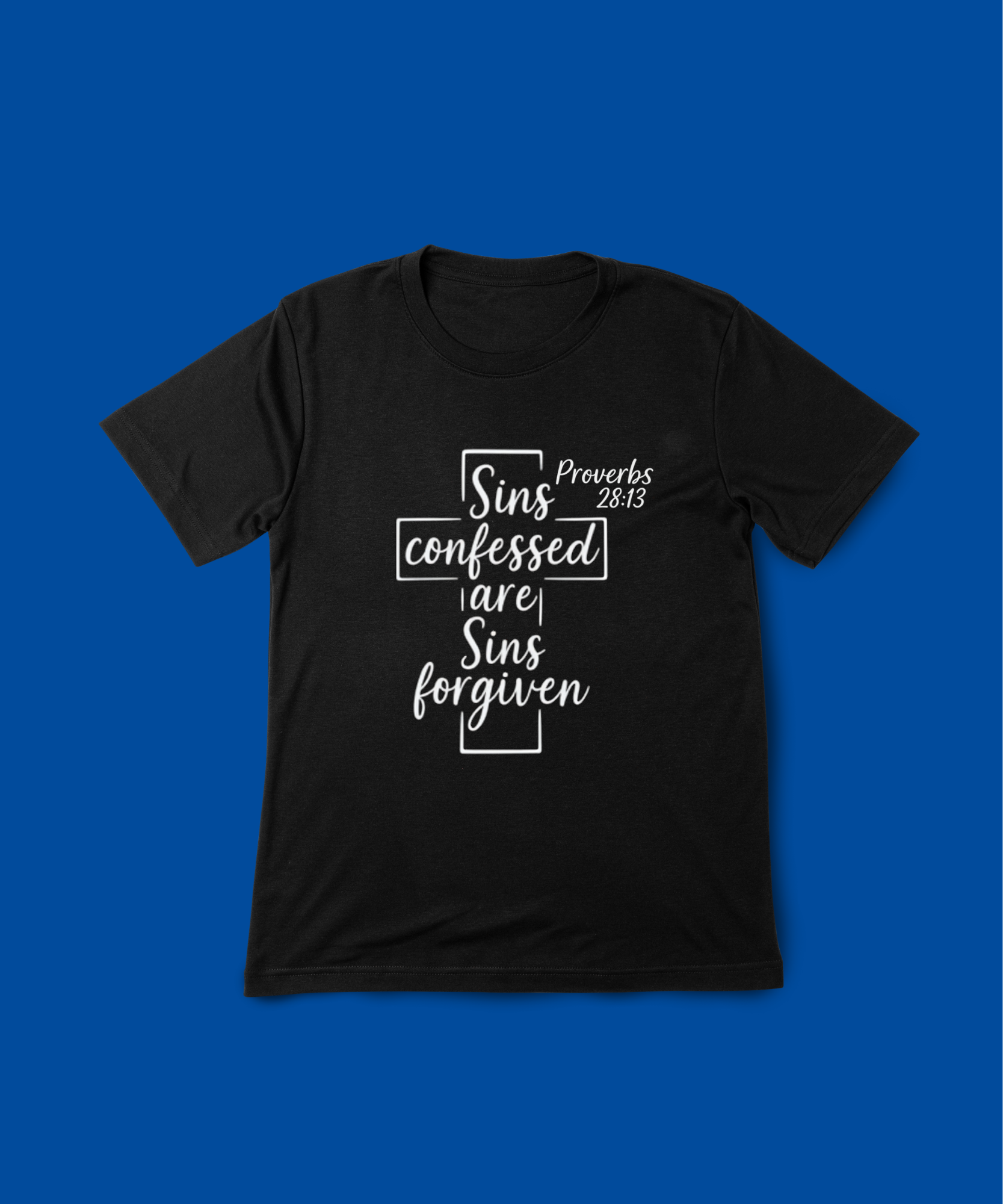 Wear your faith boldly with this powerful “Sins Confessed Are Sins Forgiven” T-shirt, inspired by Proverbs 28:13. The message is creatively framed within a cross outline, serving as a reminder of the transformative grace found in confession and forgiveness. Made with the ultra-soft and durable unisex jersey tee, this shirt offers a comfortable fit for both men and women. Whether worn during worship, outreach, or everyday life, it’s a wearable witness to God’s mercy.